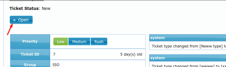 Open - ticket is seen by users and possibly assigned to a user. Needs to be worked on.