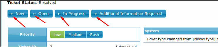 Users can now move a ticket back forth between the available Ticket Status states listed below: