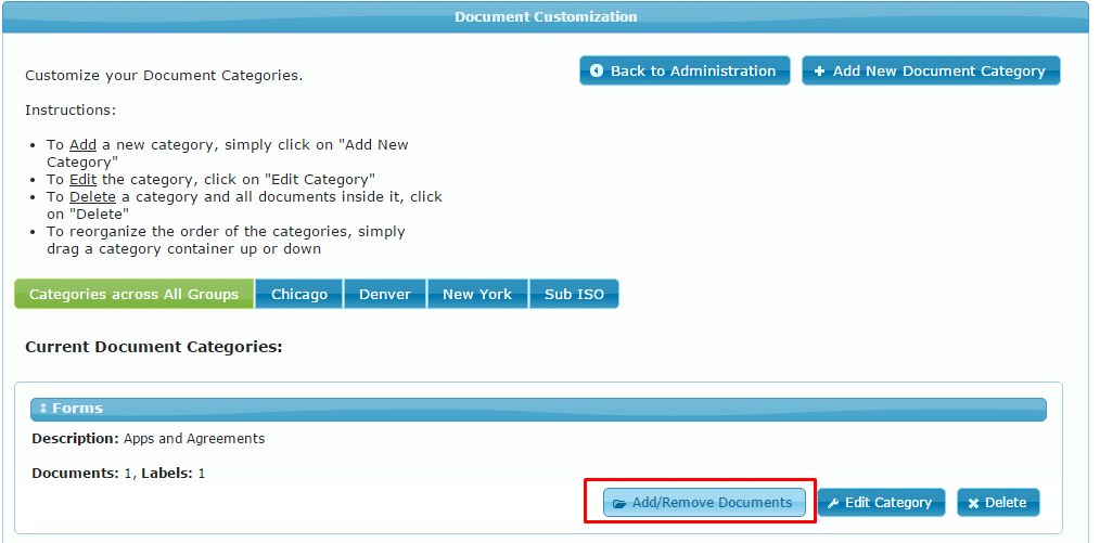 The category will now be visible. Click "Add/Remove Documents" to upload the documents you want in this category.