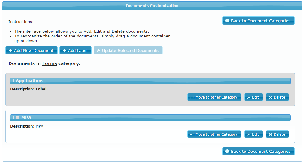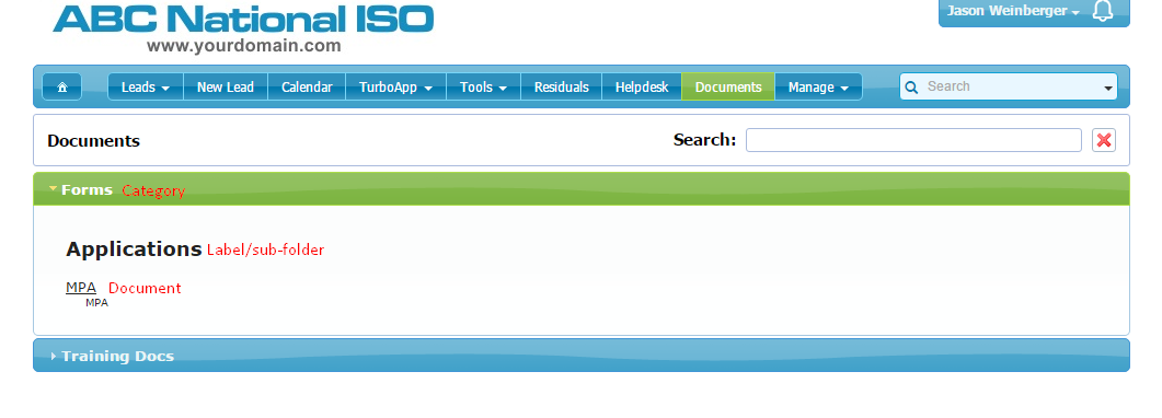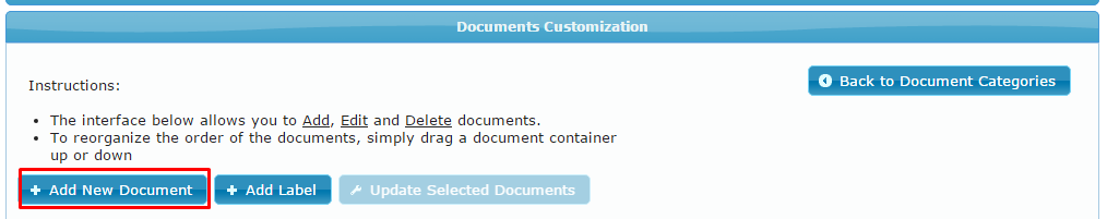Click "Add Label" if you want to create a sub-folder/category. Otherwise, click "Add New Document" and upload the document, name it and select which user class should have access to it.
