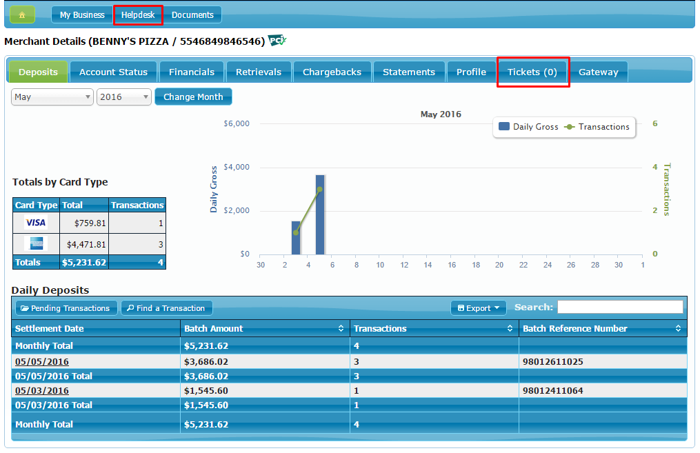 Merchants will now see a Helpdesk button in their navigation bar as well as a new Tickets tab: