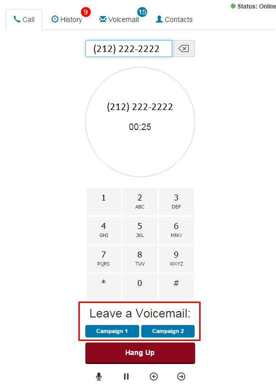 When the icon is clicked, the voicemail options that were uploaded can be selected. The agent does not even have to wait to hear the beep!